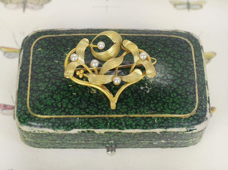 アンティーク18金宿り木ブローチ・ペンダント アンティークボックス付