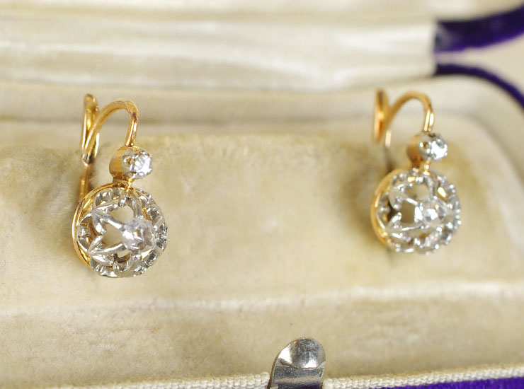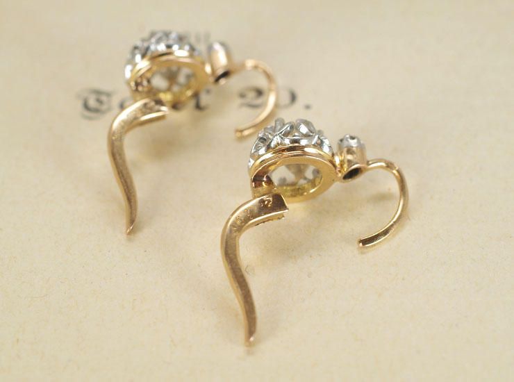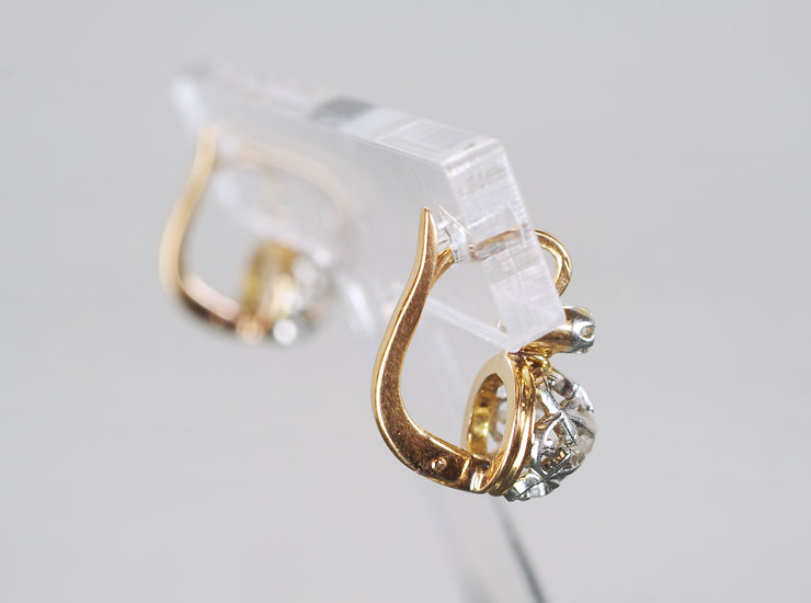 ピアスにフランスの18金のホールマーク(鷲の頭)入り。アンティーク18金ローズカットダイヤピアスは良い状態です。