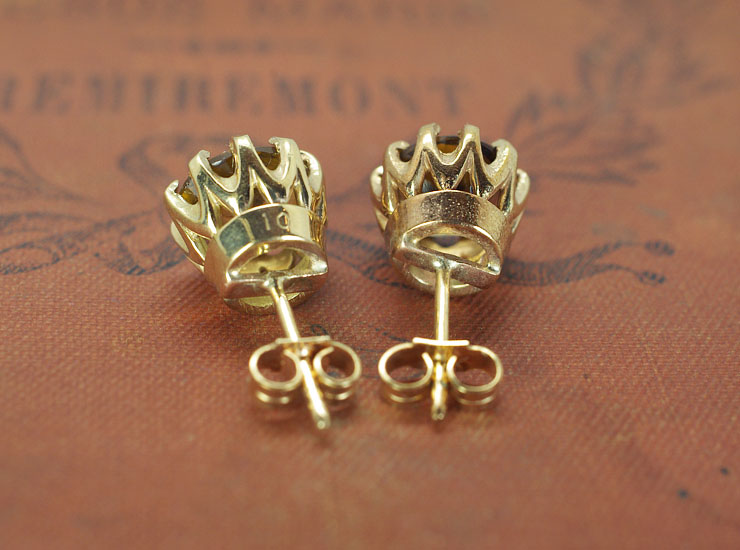 ピアスのキャッチに375と9金を示す刻印入り。ヴィンテージ9金クォーツピアスは良い状態です。