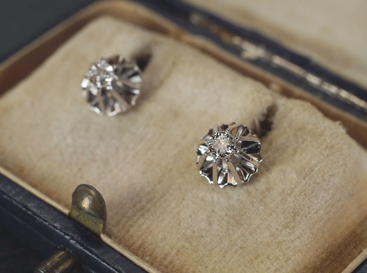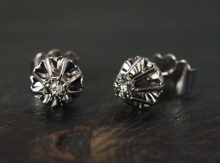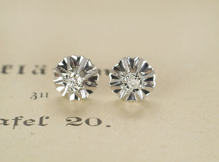 ヴィンテージ18金ホワイトゴールドダイヤピアス