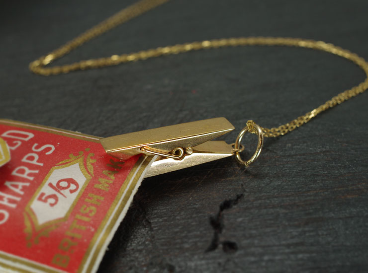 ヴィンテージ9金洗濯ばさみチャーム・ペンダント