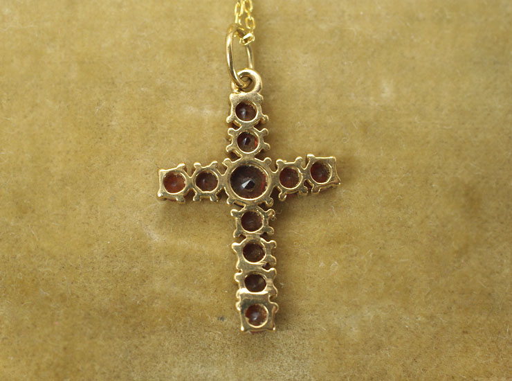 丸環に9金、1969年を示すイギリスのホールマーク(刻印)入り。ヴィンテージ9金ガーネット十字架ペンダントは良い状態です。※チェーンは商品に含まれません。※こちらの商品はレターパックプラスでお届けいたします。お届け日時のご指定ができませんので、あらかじめご了承ください。