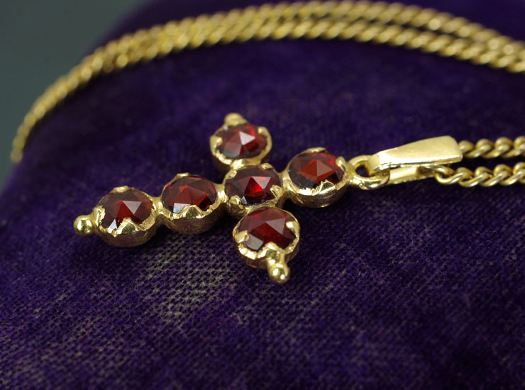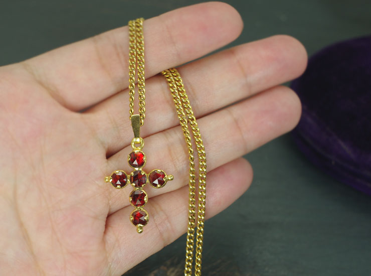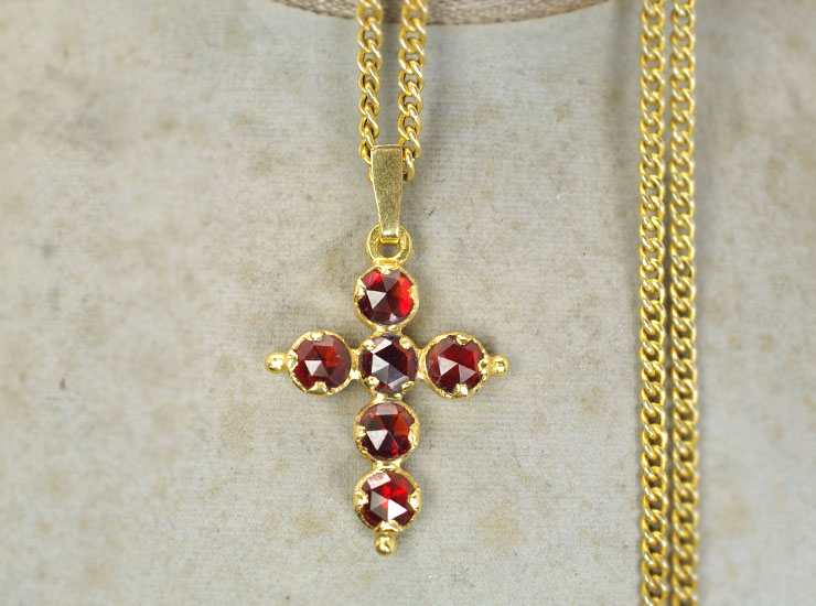 アンティーク18金ペルピニャンガーネット十字架ペンダント