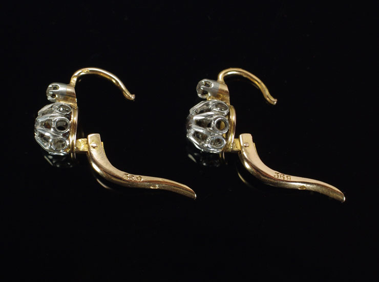 ピアスに見えにくいですが、フランスの18金のホールマーク入り。アンティーク18金ダイヤモンドピアスは良い状態です。※最後の写真では、一番上のピアスが当商品となります。