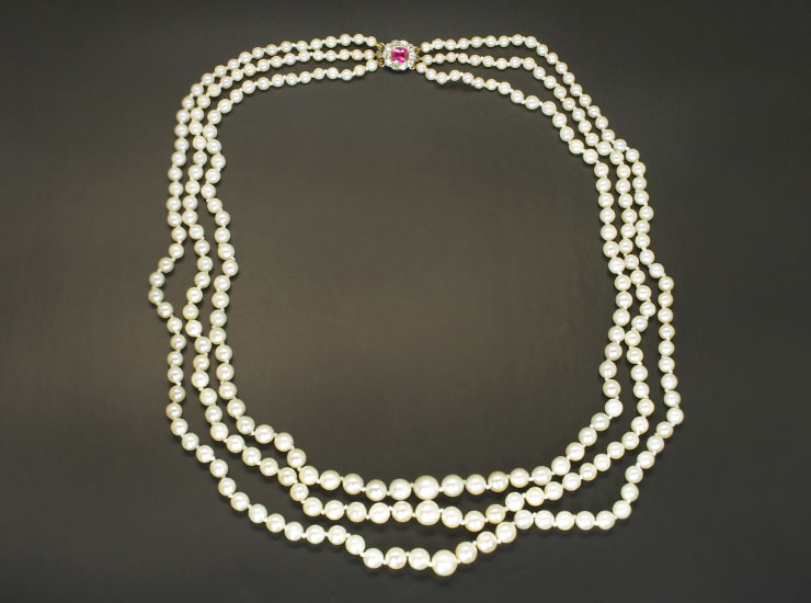 アンティーク養殖真珠三連ネックレス