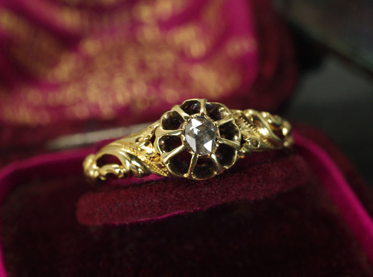 アンティーク18金ローズカットダイヤリング
