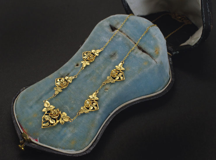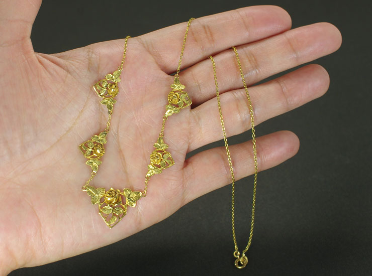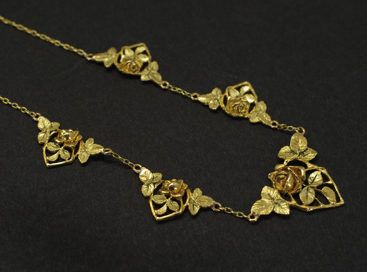 アンティーク18金アールヌーヴォー薔薇ネックレス