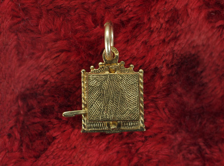 チャームに9金のホールマーク(刻印)入り。年代のマークは小さすぎて判別できません。ヴィンテージ9金人形劇チャームは良い状態です。