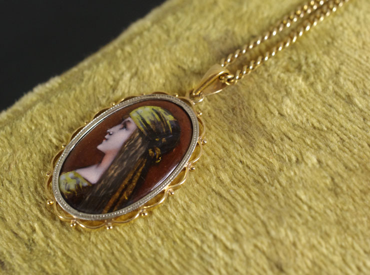 アンティーク18金リモージュエナメルペンダント