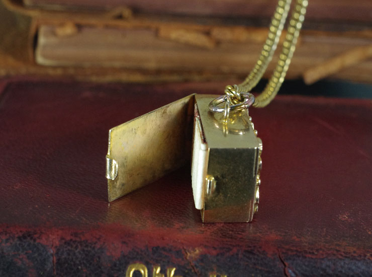1965年のイギリス製ヴィンテージチャームです。ボックスの中に10シリング紙幣が入っているユニークなチャームです。「もしものためのお金」といったところでしょうか。ボックスはスムーズに開閉でき、中の紙幣を取り出すことができるので、ロケットのように小さな写真などを入れることもできます。ボックスはガラスは付いていませんが、全面の開いた部分は取り外し自由のプラスチックカバーが元々付いています。アイディアしだいで楽しくご使用いただけます。