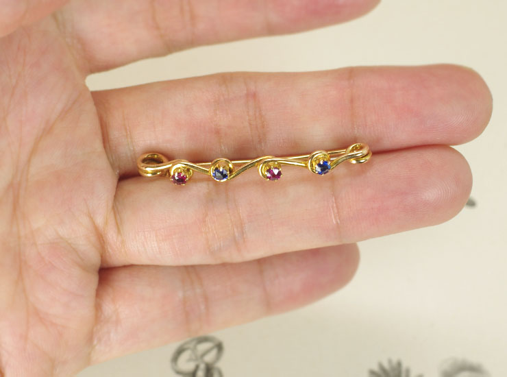 アンティーク15金ルビーサファイアブローチ