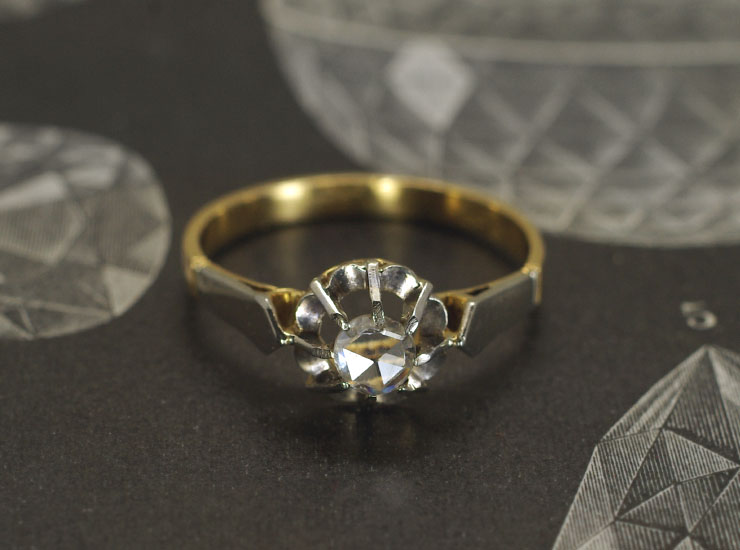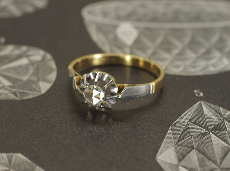 アンティーク18金ローズカットダイヤ1石リング