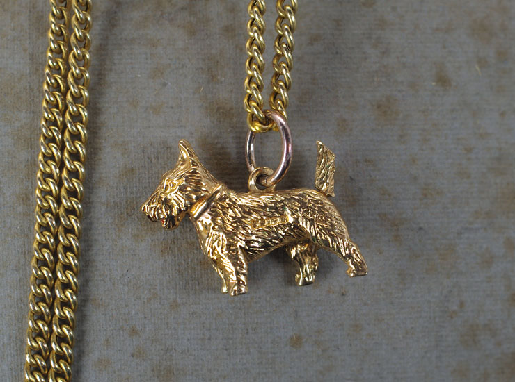 チャームに9金、1976年を示すイギリスのホールマーク(刻印入り)。ヴィンテージ9金ゴールド犬チャームは良い状態です。※チェーンは商品には含まれません。※こちらの商品はレターパックプラスでお届けいたします。お届け日時のご指定ができませんので、あらかじめご了承ください。