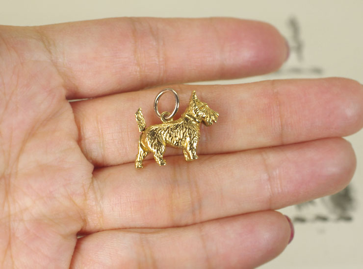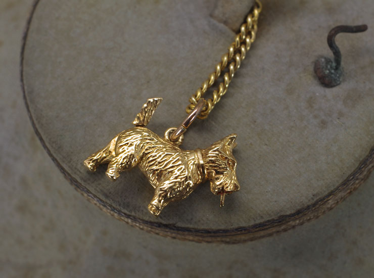 1976年のイギリス製ヴィンテージチャームです。モフモフとした可愛らしい犬のチャームですが、なんとちょっとした仕掛けがあります。尻尾を動かすと舌が動く仕掛けになっている珍しいチャームなのです。