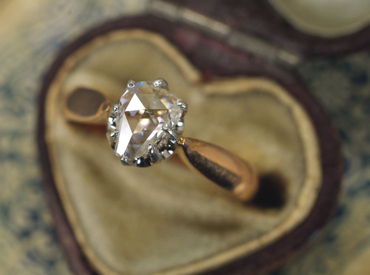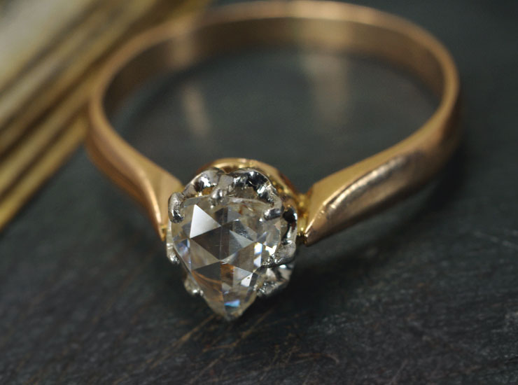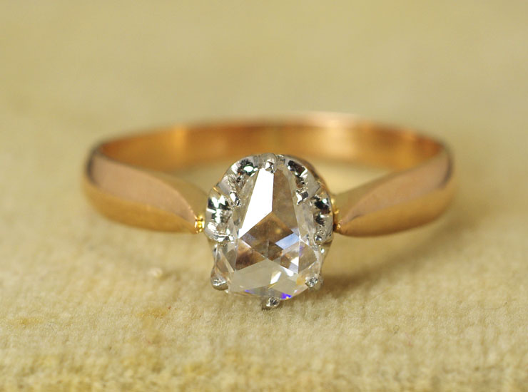 アンティーク18金ペアシェイプローズカットダイヤリング