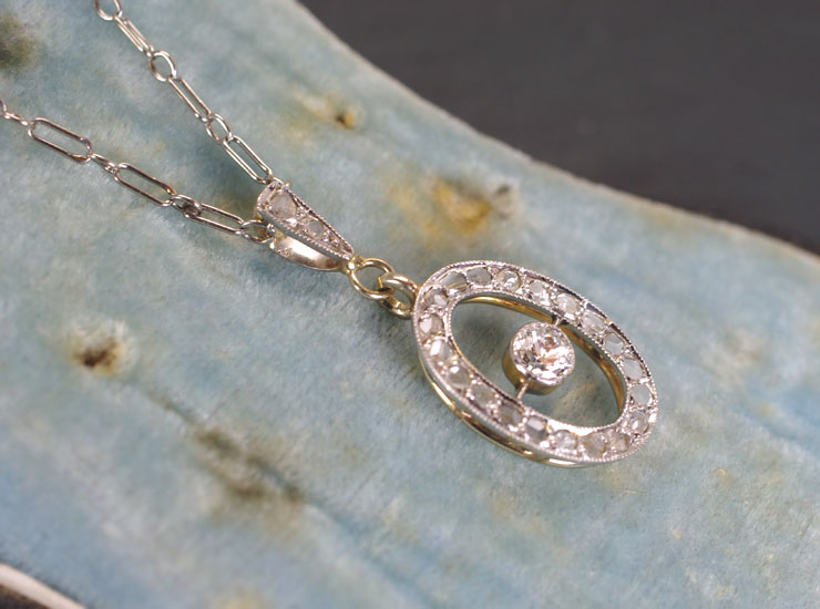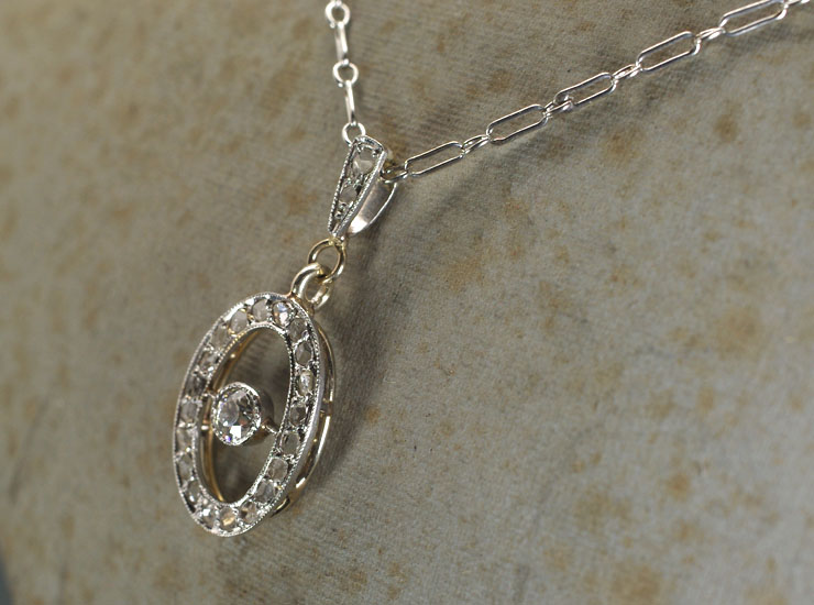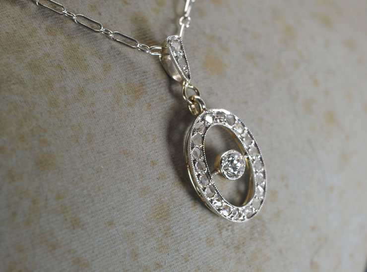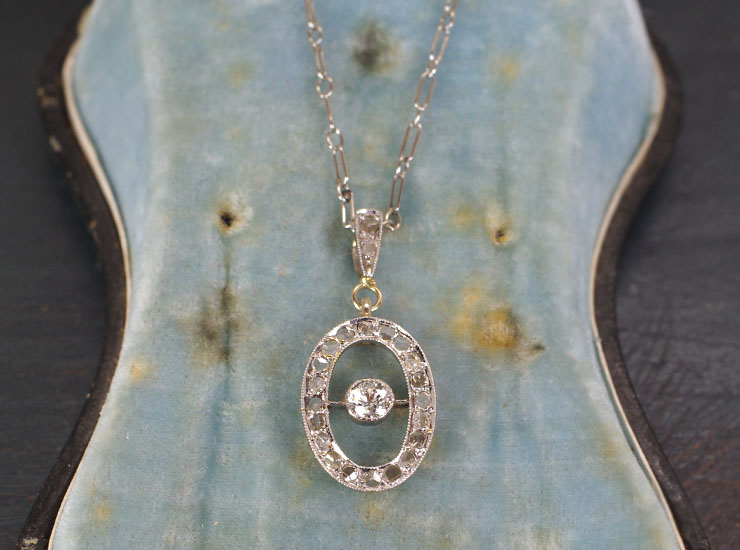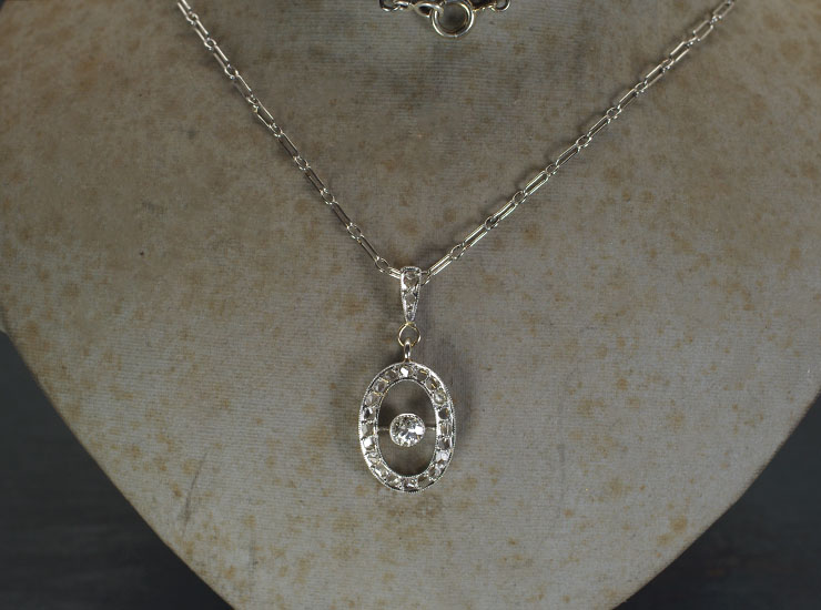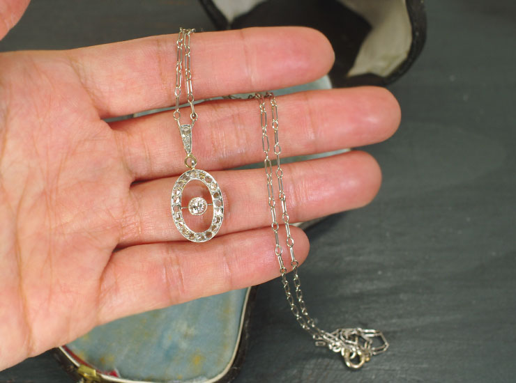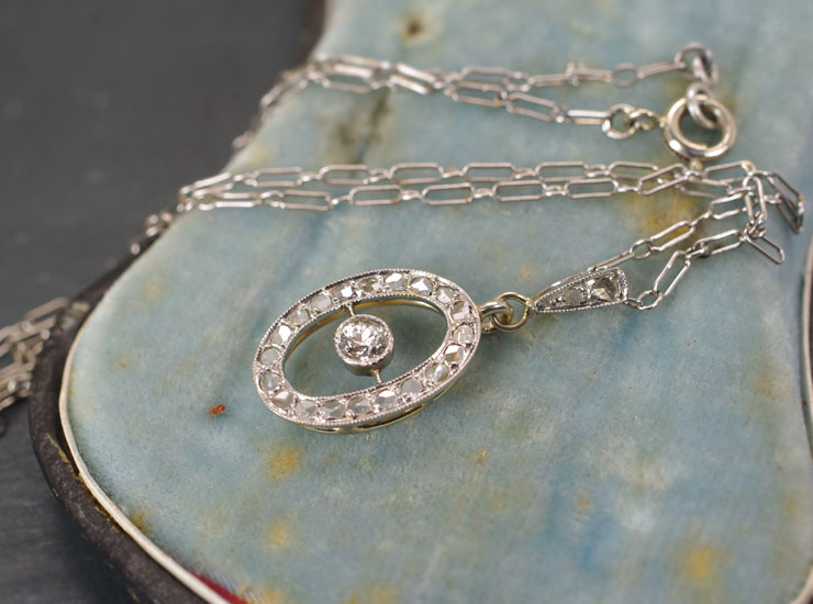 アンティーク18金ホワイトゴールドダイヤモンドネックレス