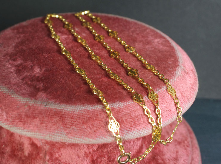 その美しさと作りの良さから、日本だけではなく世界中に人気の高いアンティークゴールドチェーン。近年ますます手に入りにくくなっておりますので、お探しの方はぜひご検討ください。