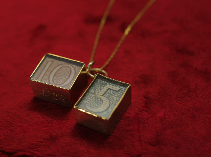 ヴィンテージ9金ゴールド5ポンド紙幣チャームペンダント