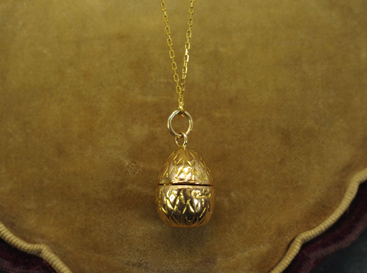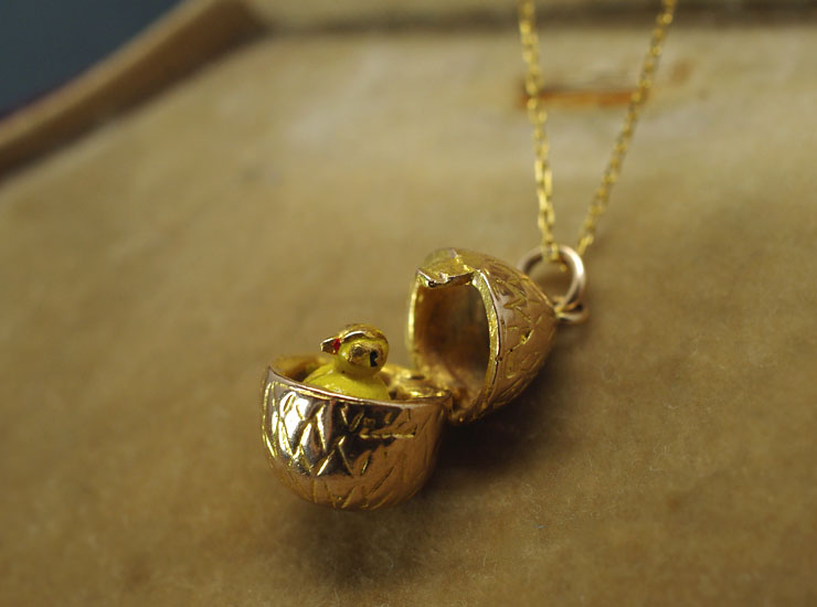 チャームに「9ct」と9金を示す刻印、丸カンに「375」と9金を示す刻印入り。ヴィンテージ9金卵の中にひよこチャームは良い状態です。※チェーンは商品には含まれません。※こちらの商品はレターパックプラスでお届けいたします。お届け日時のご指定ができませんので、あらかじめご了承ください。