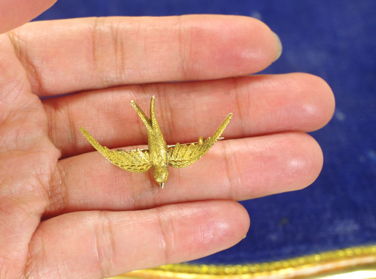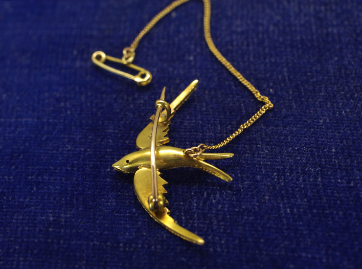 アンティーク15金ツバメブローチ
