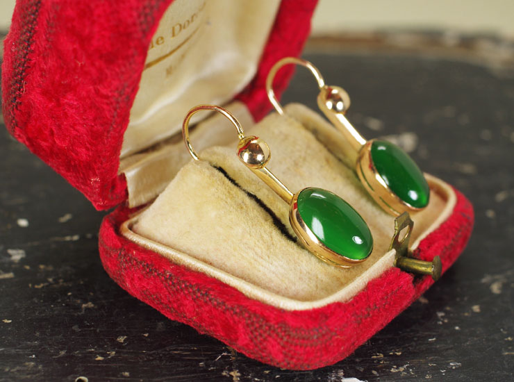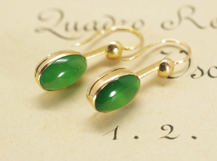 ヴィンテージ14金グリーンカルセドニードロップピアス