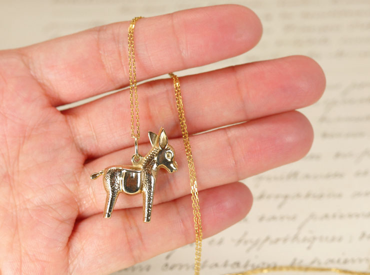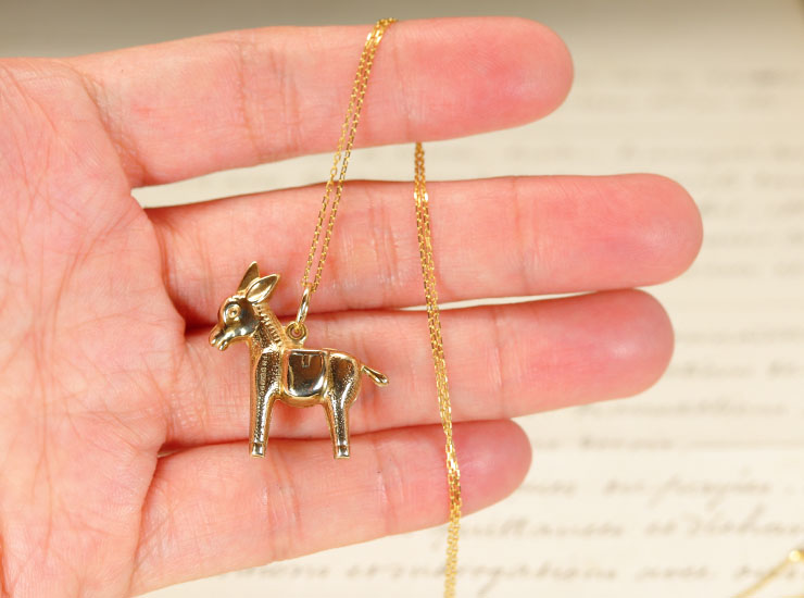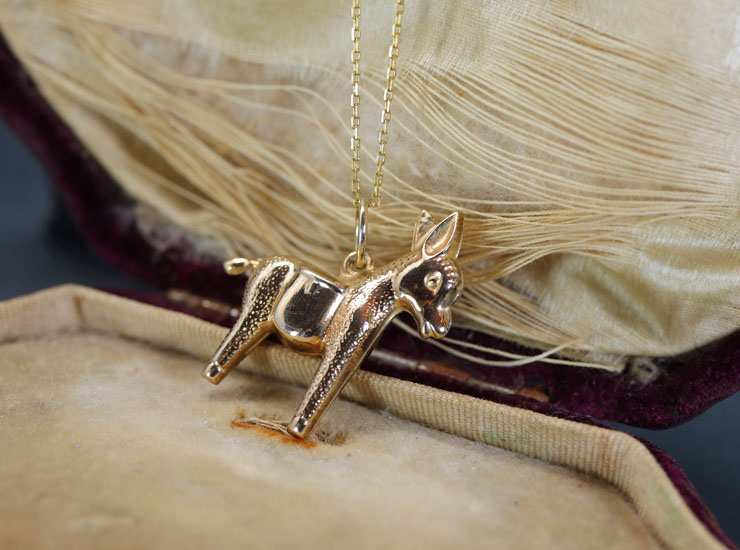 1972年のイギリス製ヴィンテージチャームです。可愛らしい丸っこいフォルムのロバちゃんです。ロバがモチーフのチャーム・ペンダントは日本ではなかなか見つからないと思います。中が空洞の作りで大きさの割に軽く、細いチェーンにも合わせていただけます。地金は9金。