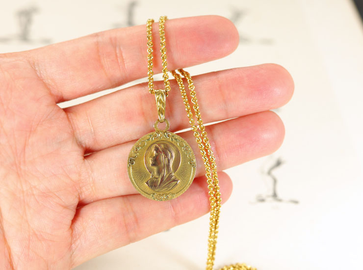 アンティークK18聖母マリアメダイ