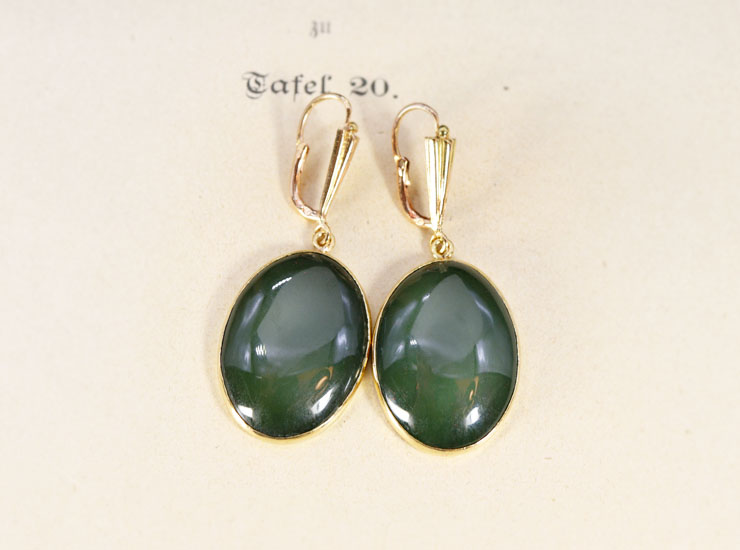 ヴィンテージ18金大粒ネフライトドロップピアス