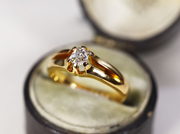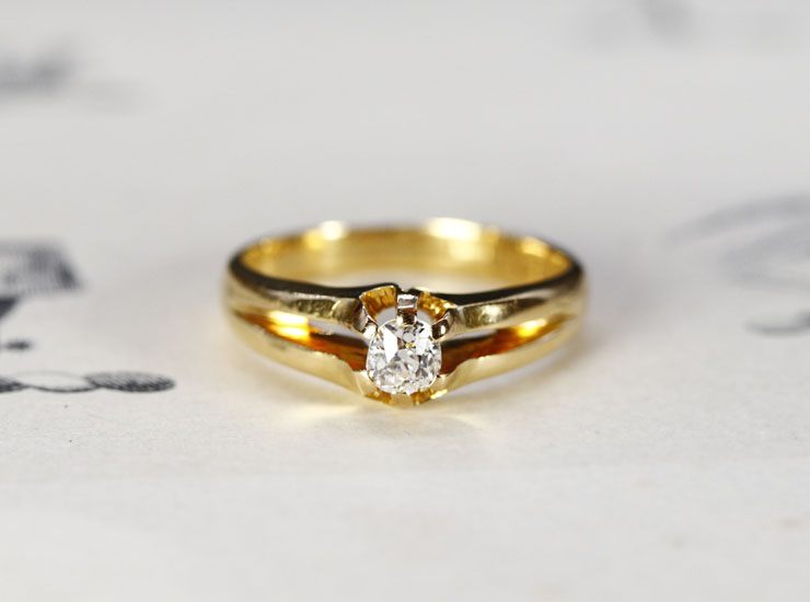 ヴィクトリアン18金ソリティアダイヤモンドリング