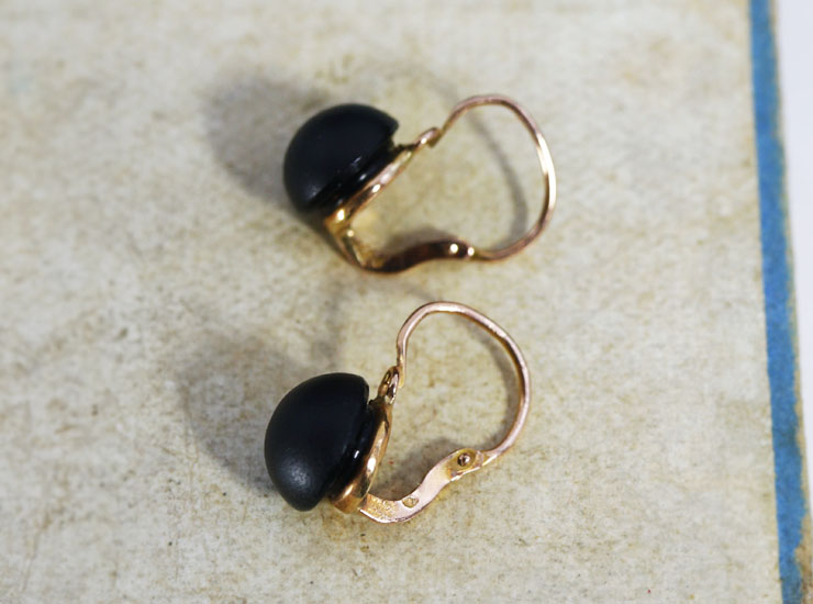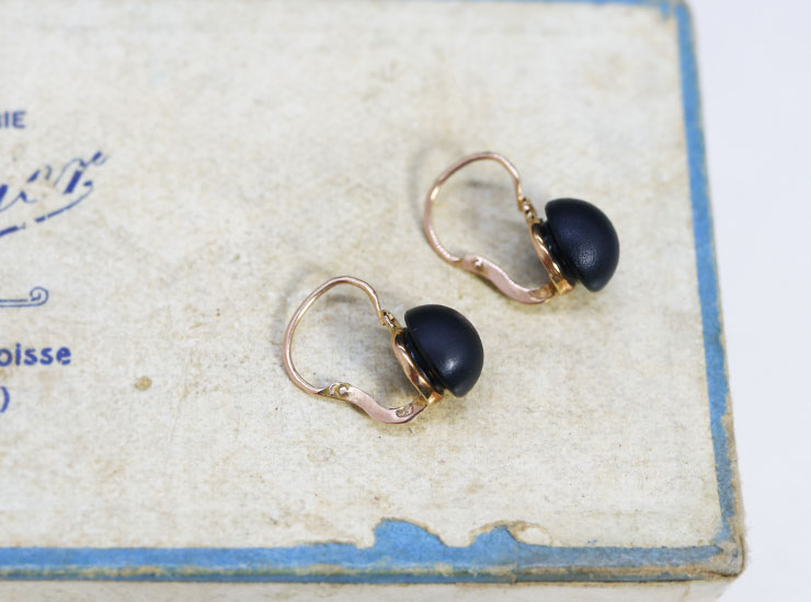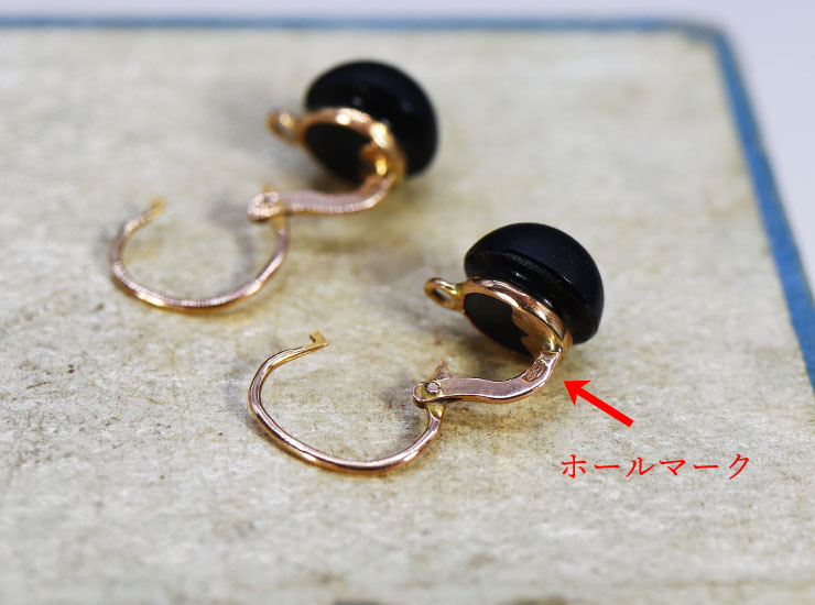 ピアスにフランスの18金のホールマーク(鷲の頭)入り。アンティーク18金フレンチジェットピアスは良い状態です。※こちらの商品はレターパックプラスでお届けいたします。お届け日時のご指定ができませんので、あらかじめご了承ください。