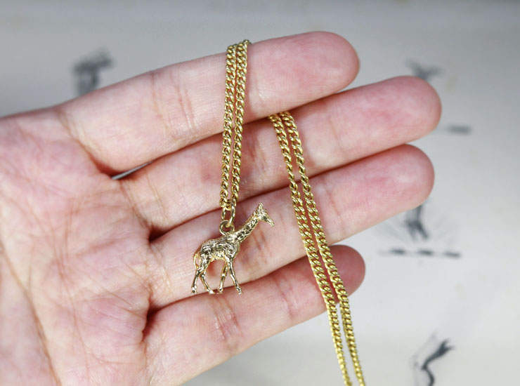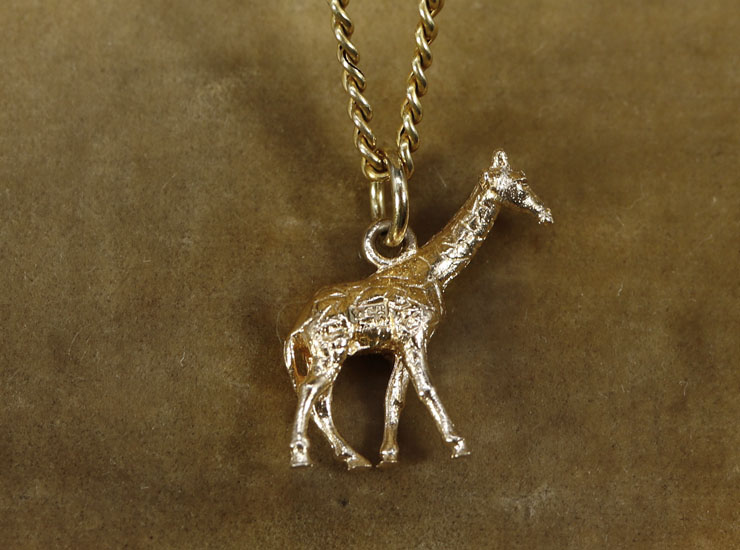 1970年頃のイギリス製ヴィンテージチャームです。リアルな作りのミニチュアキリンです。指先に乗るほどの小さなキリンですが、骨格や体の模様などが細やかに表現されています。