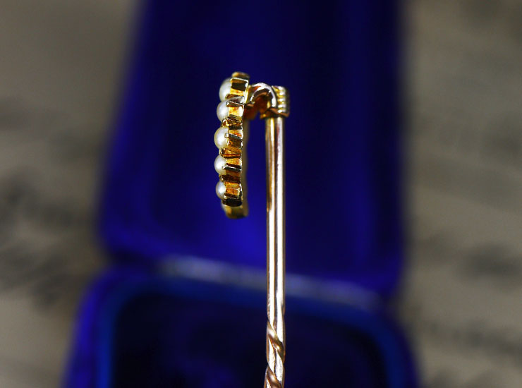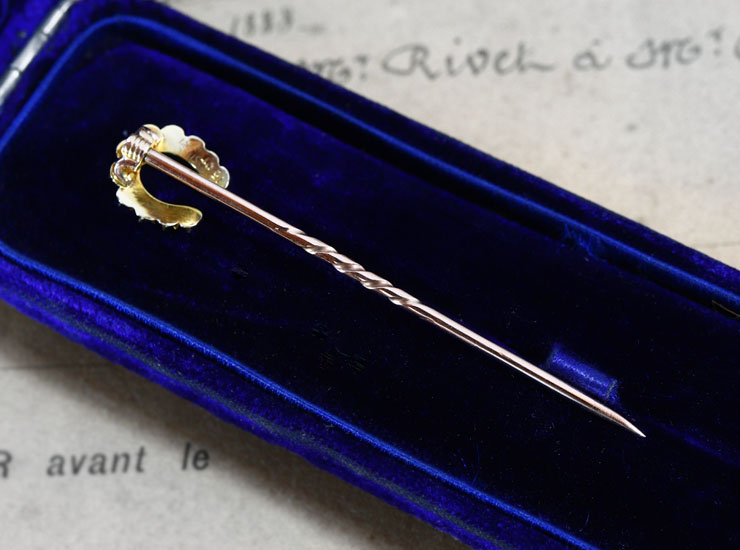 アンティーク15金&9金シードパールホースシュークラバットピン ケース付き