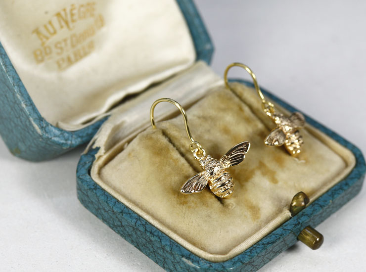 ヴィンテージと呼ぶほど古くはありませんが、良い作りであまりにも可愛かったのでセレクトしました。蜂が揺れ動くドロップピアスです。蜂はころんと丸みを帯びたフォルムなので、マルハナバチをモチーフにしたと思われます。