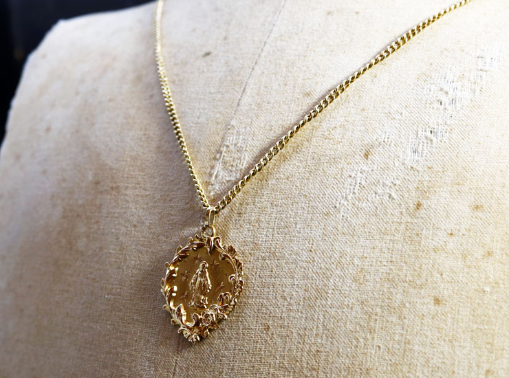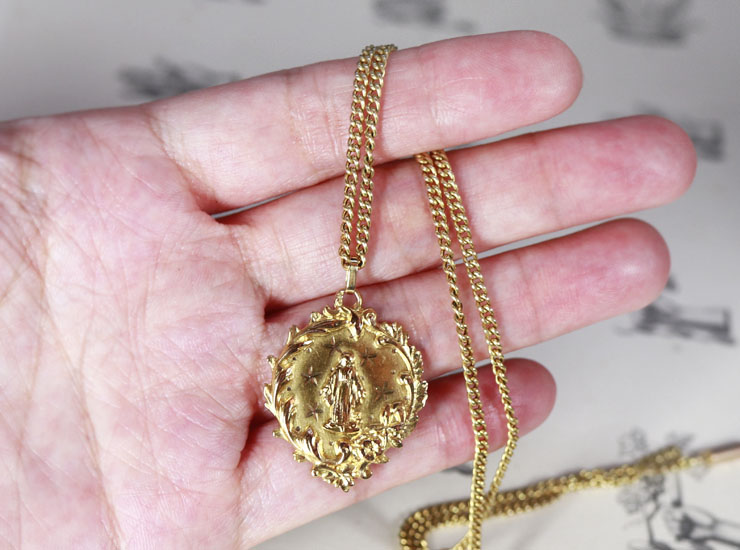 アンティーク18金聖母マリアメダイ