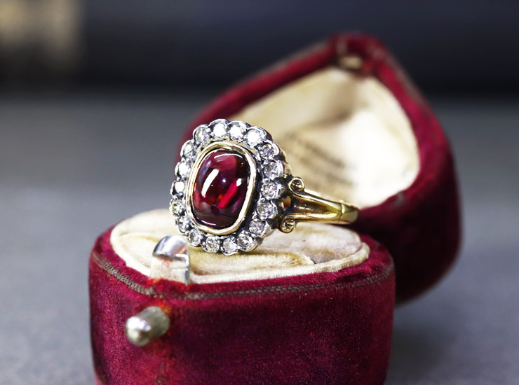 ヴィクトリアン15金ガーネットダイヤモンドリング