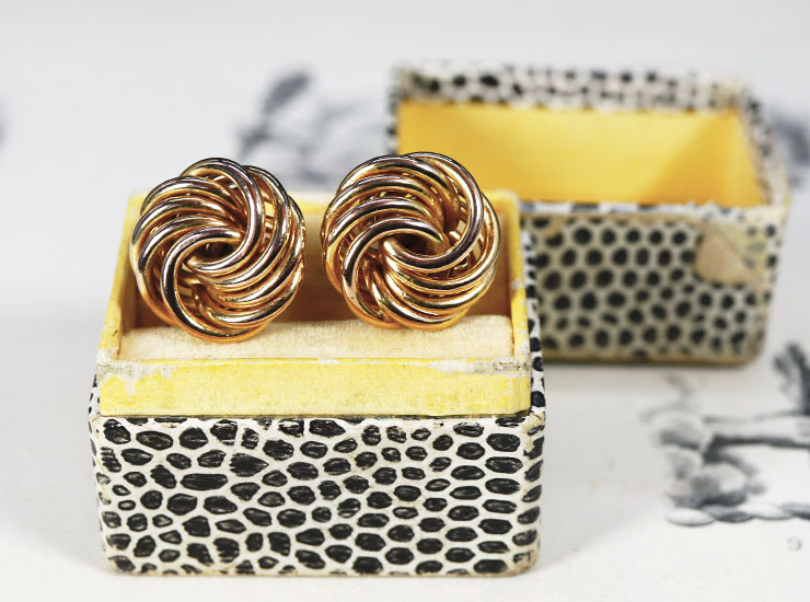 ピアスに「375」と9金の刻印、イタリアのホールマーク、イギリスへの輸入品のホールマーク入り。ヴィンテージ9金ノットピアスは良い状態です。※こちらの商品はレターパックプラスでお届けいたします。お届け日時のご指定ができませんので、あらかじめご了承ください。