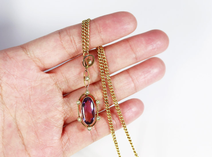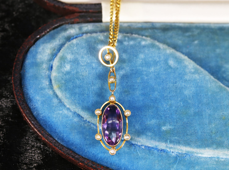 アンティーク9金アメシストパールラヴァリエールペンダント