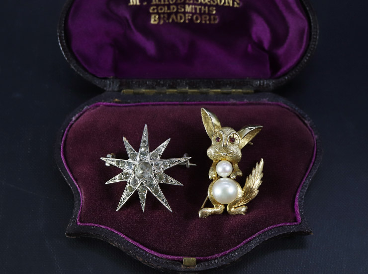 ブローチにはゴールド製品が他国からイギリスに輸入された際に打たれるインポートのマークが入っています。どこの国からやって来たかは分からないミステリアスな子です。