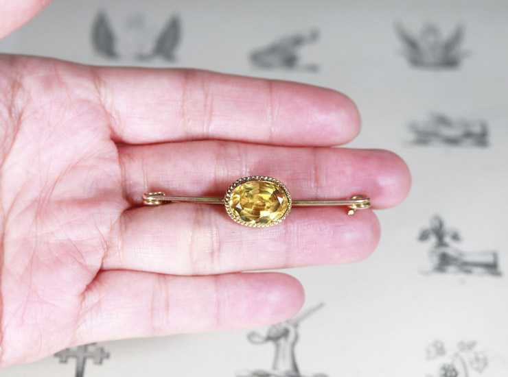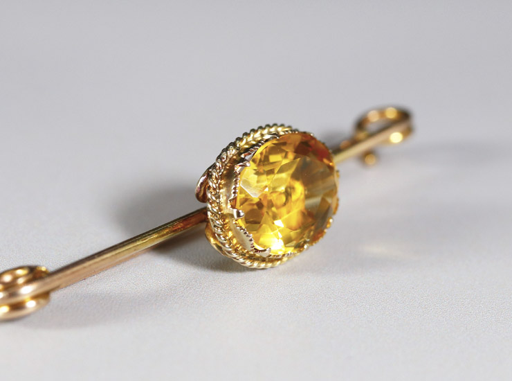 アンティーク9金シトリンブローチ