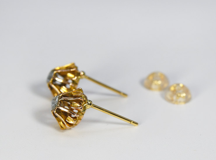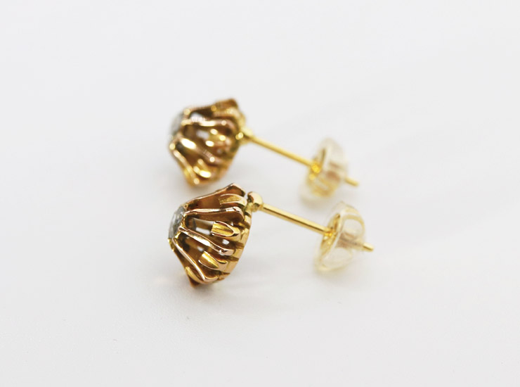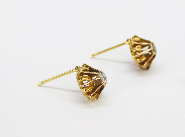 取り外した部分にホールマークがあったため刻印はありませんが、18金と確認済み。アンティーク18金ローズカットダイヤモンドピアスは良い状態です。