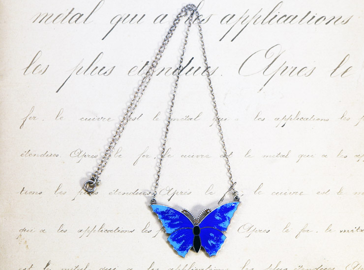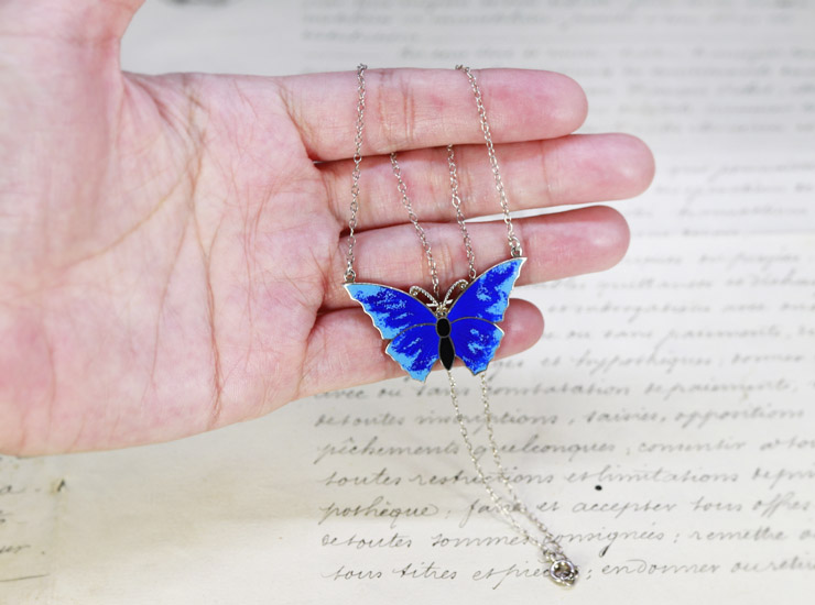 ヴィンテージシルバーエナメルバタフライ(蝶)ネックレス