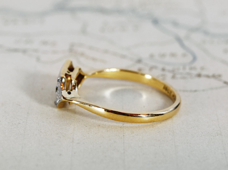 リングに「18ct PLAT」と18金、プラチナの刻印入り。アールデコ18金プラチナダイヤモンドリングは良い状態です。