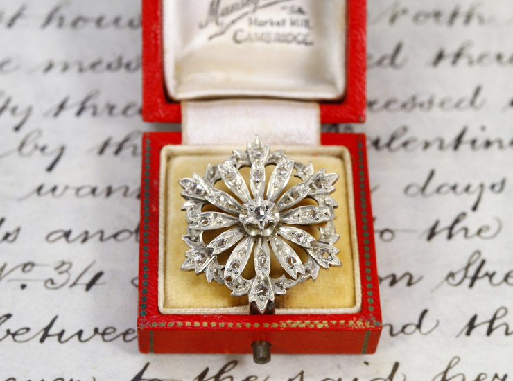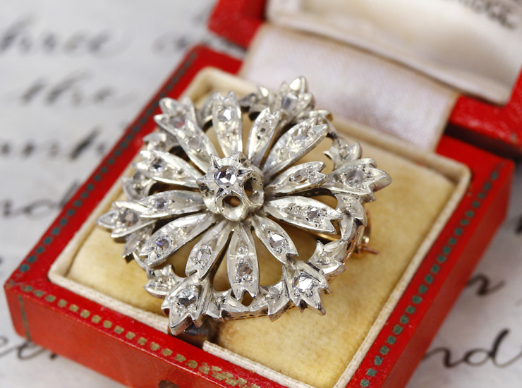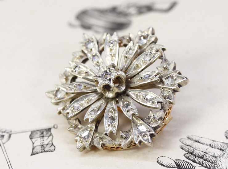 アンティーク18金シルバーローズカットダイヤモンド・マーガレットブローチ