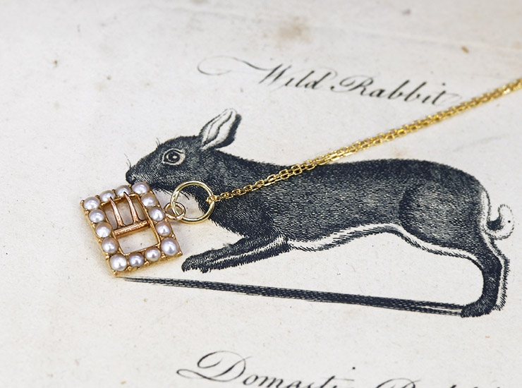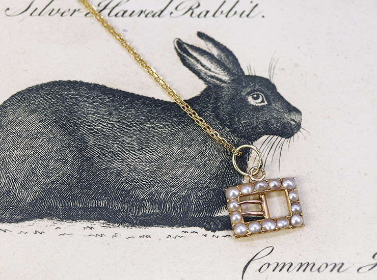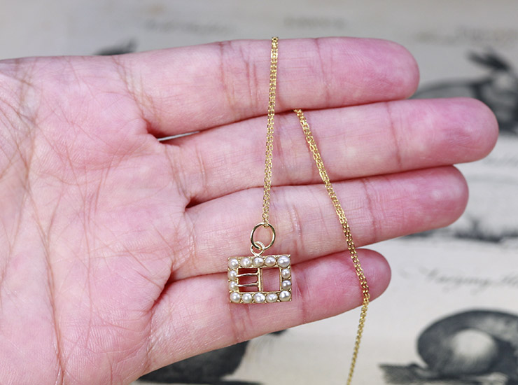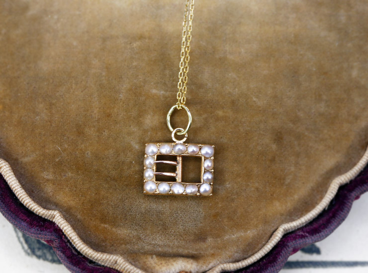 アンティーク14金シードパール小さなバックルペンダント