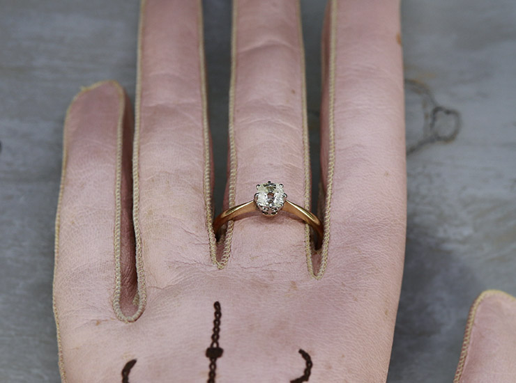 アンティーク18金オールドマインカットダイヤモンド・ソリティアリング