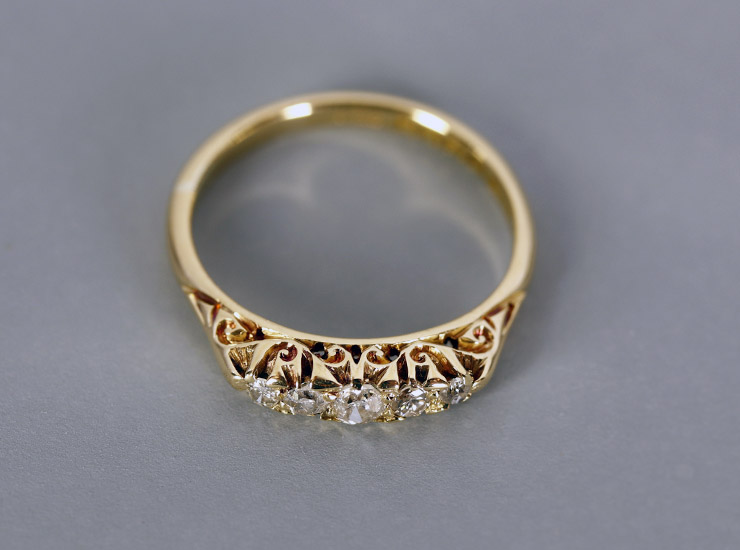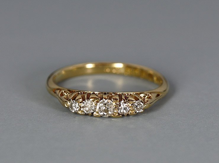 アンティーク18金ダイヤモンド5石リング