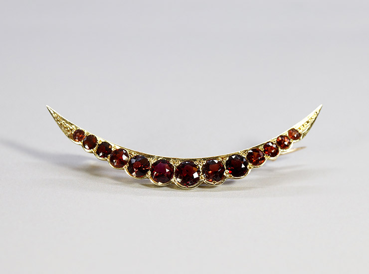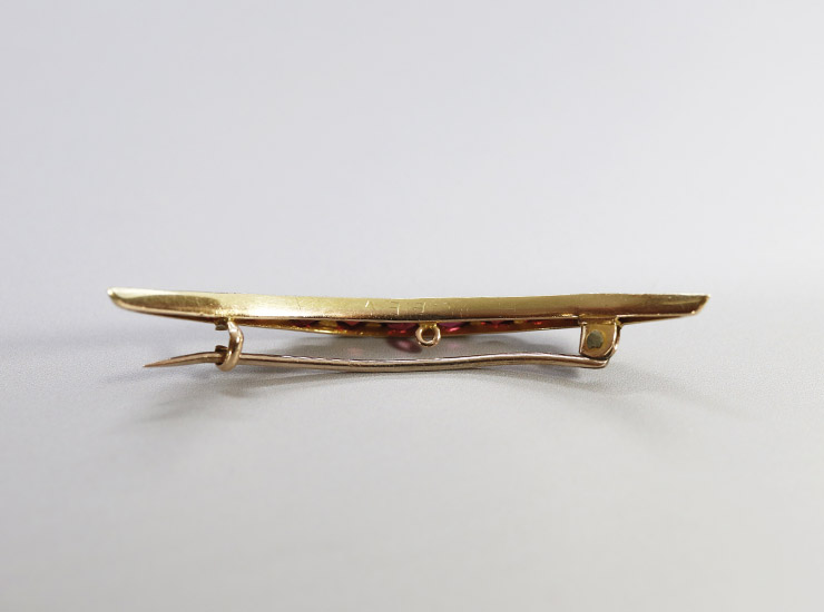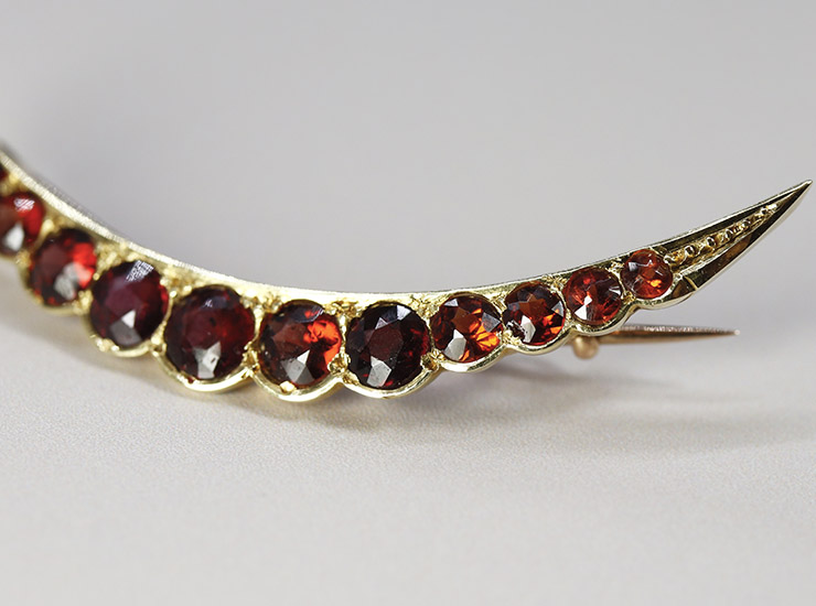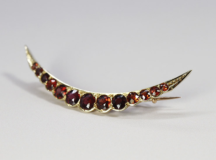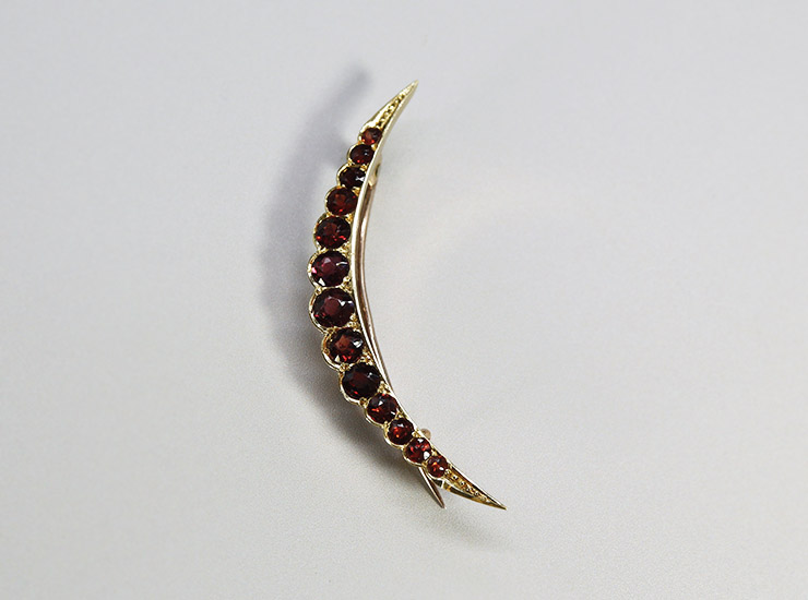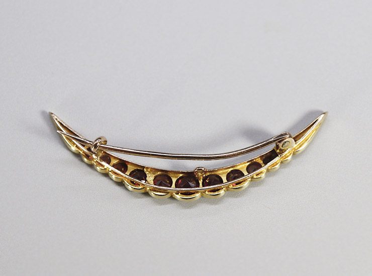 アンティーク15金ガーネット三日月ブローチ