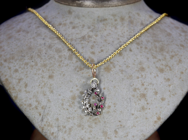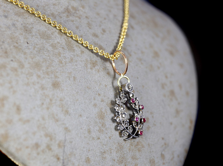 アンティーク18金・シルバーダイヤモンド&ルビーペンダント